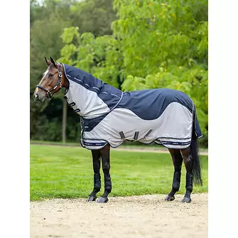 Zusätzlichen Komfort bieten der ergonomische Frontverschluss, der den Druck gleichmäßig verteilt, sowie der großzügige Bauchlatz mit mehreren Gurten für sicheren Halt. Ein langer Schweiflatz schützt zusätzlich vor Insekten und Witterungseinflüssen. Diese vielseitige Fliegendecke ist damit ideal für Pferde, die auch bei wechselnden Bedingungen optimal geschützt sein sollen.