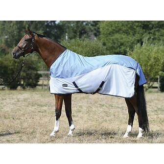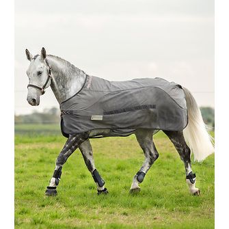 Die hochwertige Regen-Fliegendecke Comfort vereint die Vorteile einer Fliegen- mit der einer Regendecke. Hergestellt aus einem besonders luftdurchlässigen Meshgewebe, schützt sie Dein Pferd optimal vor lästigen Insekten. Der wasserabweisende Rückeneinsatz gewährleistet zudem einen hervorragenden Schutz bei Regenschauern. Die Decke ist mit einem hochwertigen Triplex-Verschluss sowie abnehmbaren Kreuzgurten ausgestattet, die für einen einfachen Verschluss und einen sicheren Halt sorgen. An den Ringen zur Befestigung eines Halsteils kann ein separat erhältliches Halsteil angebracht werden, das zu einem umfassenderen Schutz Deines Pferdes beiträgt.