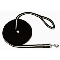 - Longe Nylon in schwarz: Die leichte, robuste und günstige Alternative. Ebenfalls mit drehbarem Karabinerhaken und Handschlaufe für den Longenführer.