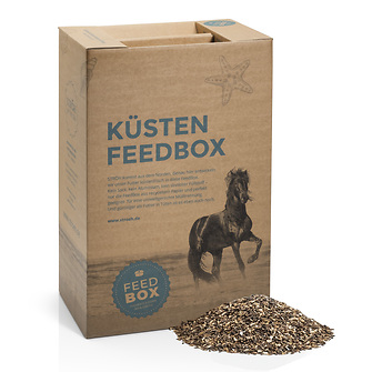 Die Feedbox finde ich grundsätzlich eine super Idee. Aber unser Postbote fand sie unhandlich und er hatte einiges an losen Haferkörnern im Auto herumfliegen. Außerdem sind eine Menge Maiskörner im Hafer enthalten. Beim nächsten Mal bestelle ich wieder ein anderes Produkt.