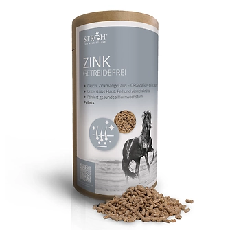 KOMPLETT ORGANISCH GEBUNDEN (OGM) sorgt das Ströh Zink für eine ideale Verstoffwechselung. Getreidefreies Ergänzungsfuttermittel für glänzendes, seidenweiches Fell, gesunde Haut, starke Hufe und Abwehrkräfte.