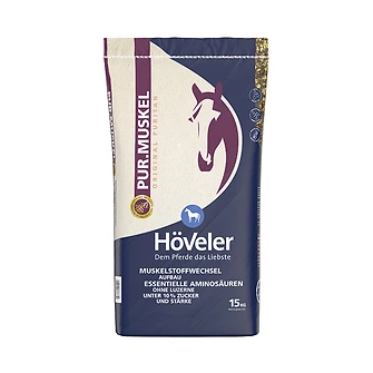 Vielseitig einsetzbar und doch so speziell: Höveler Pur.Muskel unterstützt den Muskelstoffwechsel, auch von PSSM 2-lern! Das getreide- und melassefreie Spezial-Müsli ohne Luzerne ist besonders energie- und proteinreich. Der hohe Gehalt an nativen essentiellen Aminosäuren wie Lysin, Methionin und Threonin sorgt für einen muskulösen Pferdekörper.