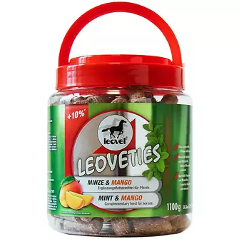 Die Leovet Leoveties Minze & Mango sind eine erfrischende und schmackhafte Belohnung für dein Pferd. Die Kombination aus aromatischer Minze und fruchtiger Mango liefert natürliche Ballaststoffe, Vitamine und Mineralstoffe und unterstützt das Wohlbefinden deines Pferdes. Geliefert werden die Leckerlis in einer praktischen, wiederverwendbaren Dose – ideal für den Stallalltag oder unterwegs.