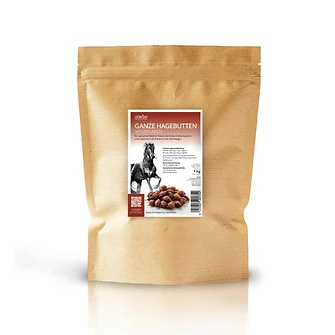Der kalorienarme Snack wird von Deinem Pferd nicht nur gerne als geliebtes Leckerli angenommen, sondern kann richtig etwas. Hagebutten sind echte Vitamin-Booster. Ihr etwa 20x so hoher Vitamin-C Gehalt im Vergleich zur Zitrone unterstützt das Immunsystem und stärkt die Abwehrkräfte. Folgende Vitamine sind in Hagebutten enthalten: Vitamin A, Vitamin B, Vitamin B3, Vitamin B6, Vitamin C, Vitamin E, Vitamin K.