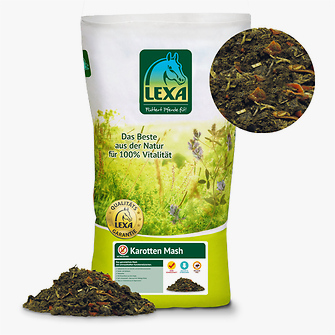 Leckerschmecker – it’s Mash time! Lexa Karotten Mash schmeckt nicht nur den Mashnasen, sondern auch den mäkeligen Pferden. Das getreidefreie Mash ist besonders zucker- und stärkearm und verfeinert mit leckeren Karottenstückchen.
