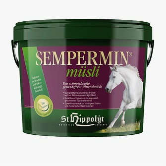 St. Hippolyt SemperMin Müsli - Das Pferdefutter, welches selbst aus einer kleinen Mahlzeit eine Große macht. Das schmackhafte Mineralfutter in Müslistruktur ist eine Ergänzung der Futterration bei moderater Getreidefütterung oder niedrigen Kraftfuttermengen.