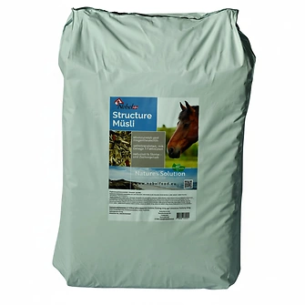 Nobel Luzerne Strukturmüsli ist ein strukturreiches Ergänzungsfutter für Pferde mit reduziertem Zucker- und Stärkegehalt. Die ausgewogene Rezeptur unterstützt eine schonende Fütterung, fördert die Verdauung und eignet sich auch für empfindliche oder ältere Pferde.
