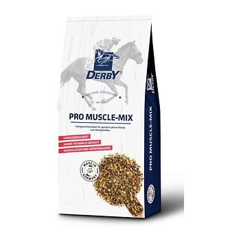 Das Beste vereint! DERBY Pro Muscle Mix ist ein stärkereduziertes Müsli für sportliche Pferde, das den Muskelaufbau unterstützt und gleichzeitig den Magen schont. Auch geeignet für schlanke Pferde zum Aufbau von Körpermasse.