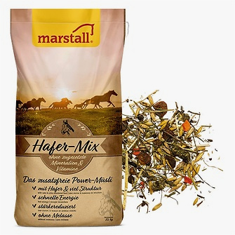 Der Marstall Hafer-Mix liefert und aktiviert die Energie Deines Pferdes und bietet Deinem Pferd ausreichend Struktur, um durch das Kauen und den vermehrten Speichelfluss zufrieden und wohlauf zu sein.