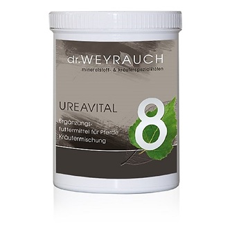 Dr. Weyrauch Nr. 8 Ureavital fördert die Entgiftungsfunktionen des Pferdeorganismus. Symptome für eine Entgiftungsfehlfunktion können dicke Pferdebeine, Muskelverhärtungen, Nervosität und bisweilen sogar ein seltsam muffendes Fell sein, das nach Harn riecht ohne dass das Pferd verschmutzt ist. Neben einer eiweißreduzierten Fütterung können saponinreichen Kräuter Abhilfe schaffen. Die Kräutermischung Nr. 8 Ureavital hat sie in sich.