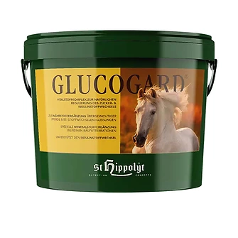 St.Hippolyt Glucogard ist ein Horse-Care Produkt von St. Hippolyt, das zur ernährungsgerechten Fütterung von Pferden entwickelt wurde, die durch Hufrehe gefährdet oder sogar bereits von Hufrehe betroffen sind. Es empfiehlt sich auch bei allen anderen Problemerscheinungen, die durch einen gestörten Zuckerstoffwechsel begünstigt werden, bei denen der Fellwechsel und das Fellwachstum extrem beeinträchtigt sind (wie EMS, das Equine Metabolische Syndrom sowie das Cushing-Syndrom). St. Hippolyt Glucogard gleicht die Mängel in der Nährstoffversorgung aus. Es kann einer verminderten Durchblutung entgegenwirken sowie Hufschädigungen durch minderversorgtes Hufgewebe. Glucogard ist eine wirksame Stütze für alle Pferde, die es gesundheitlich in dieser Hinsicht schwer haben.