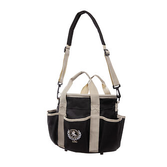Praktische Verstaumöglichkeit von Putzzeug und Pflegeutensilien mit einem gepolsterten, abnehmbaren Schulterriemen und seitlichen Trageriemen. Ein idealer Begleiter, z.B. für den Turniertag.