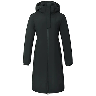 Der Mantel ist mit einem praktischen 2-Wege-Reißverschluss ausgestattet und verfügt über einen Reitschlitz mit Reißverschluss und Logoapplikation für mehr Bewegungsfreiheit im Sattel. Zwei Einschubtaschen und eine Innentasche mit Reißverschluss bieten Platz für wichtige Utensilien. Ein elastischer Ärmelabschluss sorgt für einen guten Sitz. Der Mantel ist atmungsaktiv mit 3000 g/m²/24 h, wasserabweisend und maschinenwaschbar bei 30 °C.