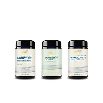 Mit Ashwagandha enthält die Kombination ein bewährtes Adaptogen, das die Stressresistenz fördern und das Cortisol-Level ausgleichen kann. Ergänzt wird die Formel durch einen Magnesium Complex zur Unterstützung der Nervenfunktion sowie NightCare mit Melatonin und pflanzlichen Extrakten für eine verbesserte Schlafqualität und nächtliche Regeneration.