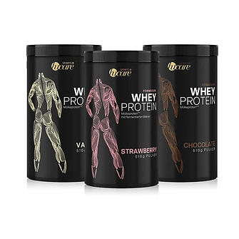 - Protein-Bundle mit drei Whey-Sorten: Vanilla, Chocolate & Strawberry