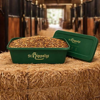 Mit der neuen St. Hippolyt® Futterbox wird die Futterportionierung einfach, sauber und effizient. Die rechteckige Box mit einem Fassungsvermögen von 3 Litern bietet ausreichend Platz für bis zu 3 kg Pellets oder 2 kg Müsli und eignet sich ideal zur Vorbereitung der täglichen Rationen.