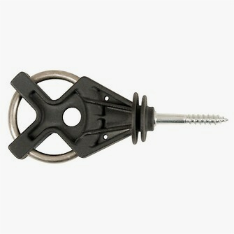 Strapazierfähiger und sicherer Torisolator mit 6 mm Holzgewinde. Verzinkter Ring für drei Einhängemöglichkeiten